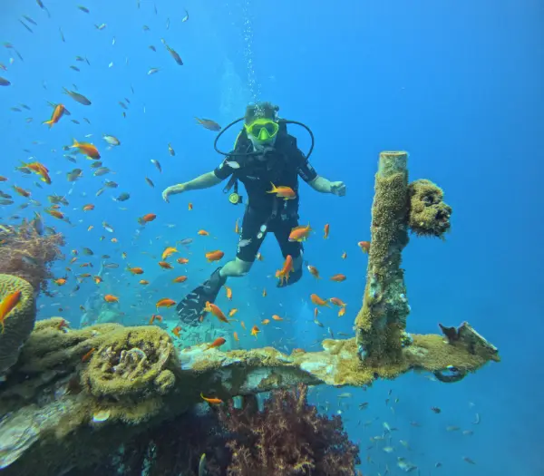 Diving on Satil opens up a wonderful world for you. The hull of the ship is already partially overgrown with corals, around which fish scurry. Inside the ship, you will be able to explore various rooms, including the bridge and the engine room, which creates a sense of real adventure.